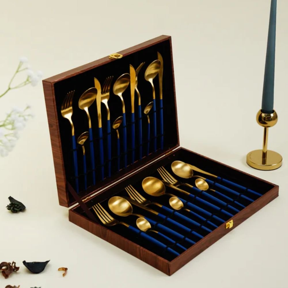 Royal Blue Gold Cutlery Set (24 Pieces)